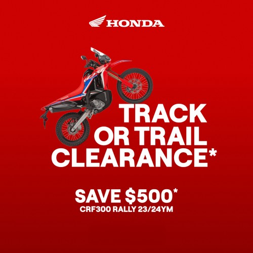 - The CRF300 Rally 24year model price is comprised of the Manufacturer's Recommended List Price for a private buyer residing in the capital city of your State, 12 months registration, 12 months compulsory third party insurance, stamp duty, administration charges, and a recommended dealer delivery fee. Please confirm pricing with your preferred Honda Dealer as final on-road costs may vary according to your individual circumstances. The CRF250R and CRF450R 25 year models (non road registerable) where "Ready To Ride" pricing is stated please note the following: This is comprised of the Manufacturer's Recommended List Price and recommended dealer delivery fee. Manufacturers Recommended List Price, "Ready To Ride" and "Ride Away" pricing is subject to change without notice.